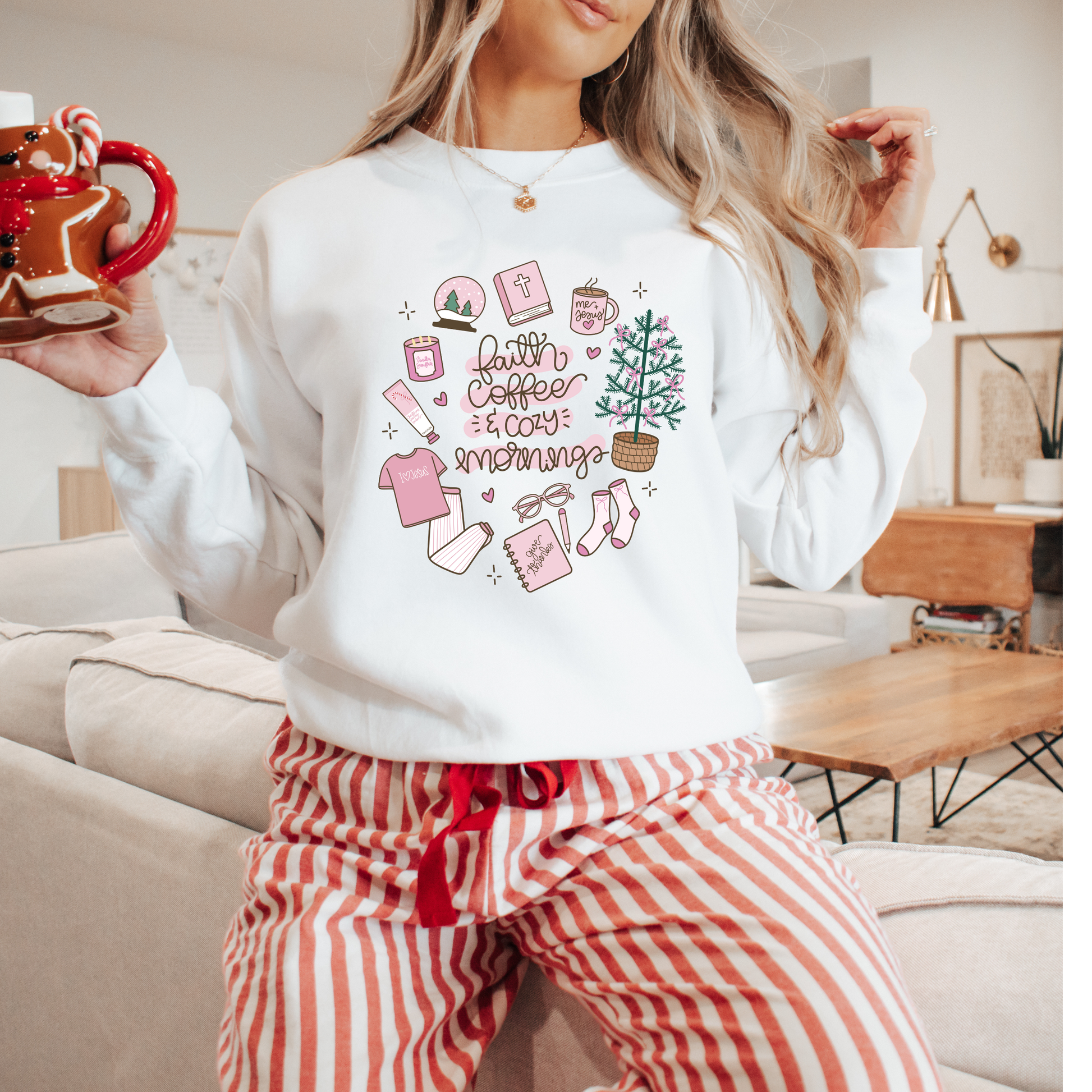 A cozy, faith-filled Christmas sweatshirt celebrating faith, coffee & cozy mornings. Soft, cheerful, and perfect for slow winter days.